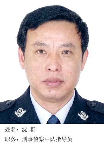 沈群 男,1961年6月出生,广水市公安分局广水分局刑侦中队指导员。沈群从事公安工作以来,一直奋战在基层一线,由于工作成绩突出先后荣立三等功及嘉奖一次。只要遇到大案要案,他总是第一个主动请战,曾先后参加多起涉黑、命案、侵财等大小案件的侦破工作,得到了各级领导的充分肯定和高度赞扬。特别是在侦破“2015.1.30”黄磊系列持刀抢劫、猥亵妇女案中,面对劫匪持刀反扑,他镇定自若,以睿智的头脑和非凡的胆识,终将劫匪生擒。虽然在这次任务中他的脸部被劫匪刺开两条十几公分的刀口,但他仍然以坚强的毅力与劫匪进行殊死搏斗。沈群2007年荣立湖北省随州市公安局集体三等功、2001年荣立湖北省随州市公安局个人三等功、2015年被评为随州楷模。