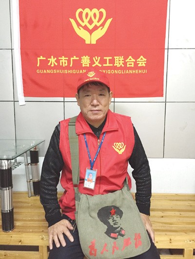 乔长富 男,1954年6月出生,广水市公安局交警大队应山中队协警。乔长富2014年加入广水市广善义工联合会,积极参加义工联组织开展的各项公益活动。2016年6月初,乔长富看到广安路十字路口,每到早中晚学生放学高峰时段,密集的人流车流拥挤不堪,交通安全状况堪忧。为了道路畅通,更是记挂着孩子们的安全,乔长富穿上义工服,自掏腰包买了个大喇叭,在交警的指导下,开始在每一天的高峰时段,义务到路口指挥交通,无论刮风下雨还是身体不适,从不间断。荆楚网、楚天都市报、广水电视台等多家媒体都先后报道了乔长富的事迹。乔长富曾被评为广水市第二届道德模范。