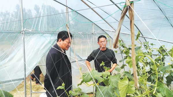 市局扶贫工作组实地查看帮扶蔬菜大棚建设使用情况。 ·胡文胜摄·