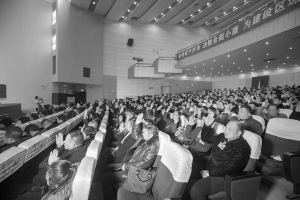 1月10日,市四届人大一次会议完成各项议程,胜利闭幕。 (本报记者 徐斌 摄)