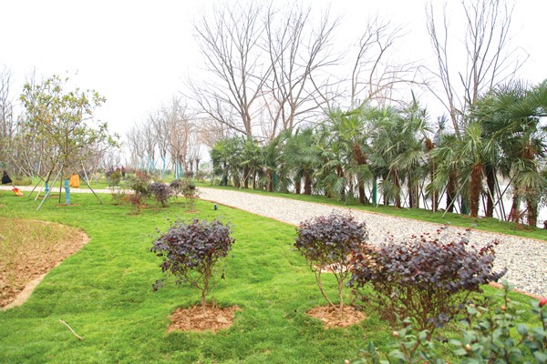 向西远远望去,“绿化带”周边有一条铺满鹅卵石的幽深休闲步道。看到记者有些疑惑,刘旺成解释说:“之所以将休闲步道铺满鹅卵石,就是为了体现海滨城市风格,体现自然亲和力,而且我们还在休闲步道旁边用杉木设置护岸,并对杉木做了防腐处理,相信融入这些别样的元素必将为生态城南增色添韵。”