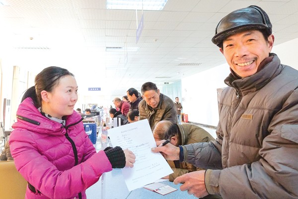 服务群众无小事。日前,随县万和镇退休职工史乐山只填写了一张表格就完成了退休申报手续。据悉,随县社会养老保险局为了让群众办事少跑路、少花钱,自己设计一张表格由群众填写,员工电脑录入,一次完成,大大方便了群众。(本报记者 李文军 通讯员 刘霞摄)