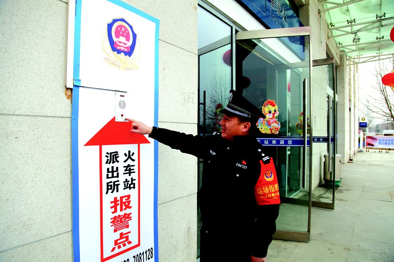 春运期间,随州火车站派出所在车站售票厅、出站口等位置安装有线报警器,直接连接到监控室,并安排专人24小时值守,保障群众出行安全。(本报记者 王王景天 摄)