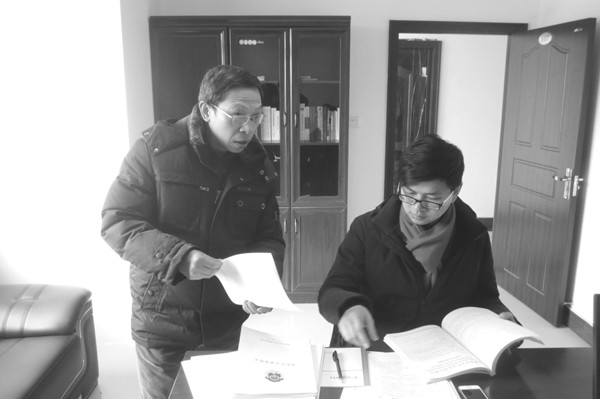 1月12日,市委第六考核组一行到市食药监局开展履职尽责(责任目标)考核。图为考核组查看相关工作资料。 (通讯员 李朝俊 摄)