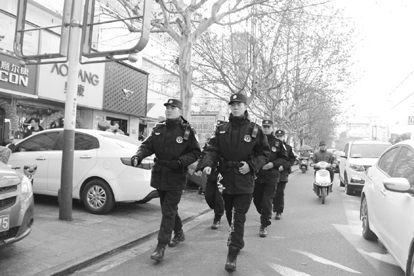随州特警针对春节临近,城区盗窃案件有所上升的态势,采取定点值守、徒步巡逻和乘车巡逻等方式,加大主城区商业广场、集贸市场和重点路段、重点时段的巡防力度,努力遏制侵财案件的发生。图为1月22日,随州特警在解放路商业及人员密集区开展巡逻防控。 (通讯员 刘智明 钱耀东摄)