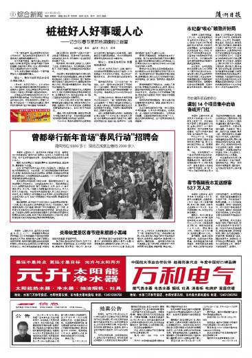 本报记者 黄闯 通讯员 李志杰 蒋辉 一年一度的春节,是合家团聚享受天伦之乐的日子,是沉淀收获和喜悦的日子,更是充满人间真情和温暖的日子。 在今年春节期间,随州大地上发生的2起好人好事,给雨雪纷飞的春节增添了别样的温暖,在随州各大网站、论坛、微信等媒体平台上激起网友们的大力点赞。 今天,本报记者就为您盘点一下春节里那些令人倍感温暖的镜头。 镜头一:群众与消防官兵冰冷河水中接力救人 1月28日,农历正月初一。上午10时04分,一辆从随州高新区淅河镇开往曾都区万店镇的小型货车,在经过两地交界处河中漫水桥时,不慎连人带车翻入湍急的河流中。 正准备去河对岸姑妈家拜年的小伙子宫世界和同伴余秋涵,下车来到河边寻找合适的地方过河,突然看到河中心漂着个水桶,河下游还有一个衣服亮点在翻动,同时听到对岸传来“娃子掉水里啦”的呼喊声。 说时迟那时快,宫世界一边脱下外套一边拨通了报警电话,迅速冲向下游目标处。余秋涵也扎进水中,河对岸的一名过路客见状也跳了下去。 寒风凛冽,河水刺骨。但他们三人顾不了这些,迅速靠近孩子,并在其他路人的帮助下,将孩子救起,交到随后赶来的民警手中。 与此同时,接到报警的随州市消防支队特勤中队官兵赶到现场救援。消防官兵携带橡皮艇等水上救援工具到场时,整个事故车辆已全部没入湍急的河水中。据现场相关知情人介绍,司机随车辆翻落河中,很有可能仍在驾驶室内。 消防官兵随即展开救援行动。在绳索的牵引下,他们利用橡皮艇靠近事故车辆沉没处,并顶着寒风下水,尝试通过车窗、车门探入驾驶室内查找落水车辆司机。 一个多小时后,河中水位下降,事故车辆驾驶室部分露出水面,消防官兵再次下水搜救,经救援人员下水反复查探,查明事故车辆驾驶室内没有人,且车门处于开启状态。 据此,中队指挥员判断,事故车司机最大可能已被冲至下游,并告知现场政府救援指挥部安排警力沿河道下游搜寻。 下午1时许,事故车遇难司机在距事故点下游约两公里河道中心处被发现。消防救援官兵随即赶到现场,涉水利用担架将遇难司机遗体抬送至120救护车。 镜头二:旅客丢包尚不知 铁警捡到速归还 2月2日,农历正月初六。当晚,随州火车站派出所民警普刚在进站口捡到一个内装现金2万多元的女式背包,经过车站广播找到失主,及时将背包归还旅客熊女士。 随州地区历来有 “三六九往外走”的说法。这天,随州火车站也迎来了节后的第一个出行高峰,居住在广东深圳的葛先生与新婚妻子熊女士春节期间回原籍广水市过年后,准备乘坐当天K644次列车去岳阳。 当日晚上8时08分,葛先生夫妻来到随州火车站进站口,一前一后接受安检,熊女士在前面将一个黑色小背包放在安检仪上后,就进入候车室,跟在后面的葛先生也没有发现妻子的背包,夫妻两人随后乘电梯到达二楼候车室候车。 此时,民警普刚例行巡视时,发现安检仪旁边遗落一个女式红色小背包无人取走,估计是哪位进站旅客不慎落下的,随即来到安检仪旁,捡起小包,高声呼叫:“这是谁的提包?”连问了几遍无人认领。 普刚打开提包检查,发现包内有10多个红纸包,每个红包内都有数额不等的大量现金,随后又找到葛先生与熊女士的身份证,以及两张20点43分从随州站开车的K644次随州至岳阳的火车票。 普刚估计失主现在还没发现提包遗失,此时距离K644次到达随州站已经不到10分钟,他立即通知车站广播室播放失物认领启事。启事播出后,熊女士在丈夫的陪同下慌忙来到值勤室,进门就说:“警察同志,提包是我的!” 普刚热情接待了两位失主,在确认了身份之后,将提包交还给熊女士。原来,熊女士提包内装的都是过年时长辈给的压岁钱,一共有2万多元,进站后以为丈夫帮她拿了提包,因此没有引起警觉,听到广播后才发现提包不见了。 领到失而复得的提包后,熊女士高兴地拉着普刚的手连声说:“谢谢,谢谢!家乡的人好,警察更好!” 在这个辞旧迎新的日子里,我们从陌生中寻找温暖,从平凡中寻找感动。有网友说,这一桩桩好人好事看似渺小,实则充满正能量,它能够影响到你身边的每一个人,通过大家的真情传递,这个世界到处都会充满温情…… |