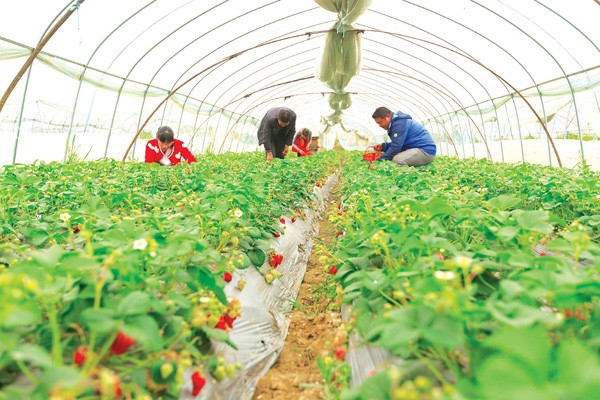 时下正是草莓上市的季节,随州城郊的草莓园吸引了不少周末踏青郊游的市民体验采摘的乐趣。(本报记者 徐斌摄)