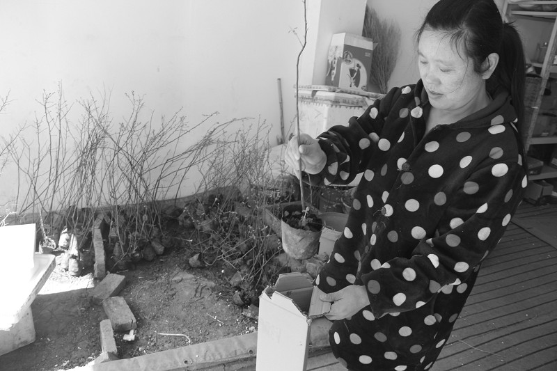 曾都区经济开发区电商李政,月销售农副土特产品18万多元,安置了11个农民工。图为3月14日,村民包装蓝莓苗销给城市订户。
