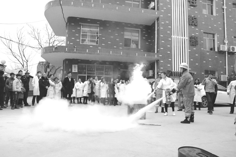 3月15日下午,广水市关庙镇卫生院邀请广水市消防大队教官,组织了别开生面的消防安全知识培训及消防演练活动。图为消防演练现场。(通讯员 刘晓斌摄)