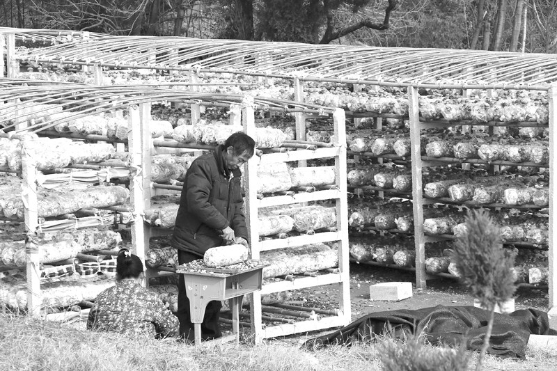 随县殷店镇岩子河农民正积极开展袋料香菇生产,力争增产增收。 (本报记者 孙洪涛 摄)