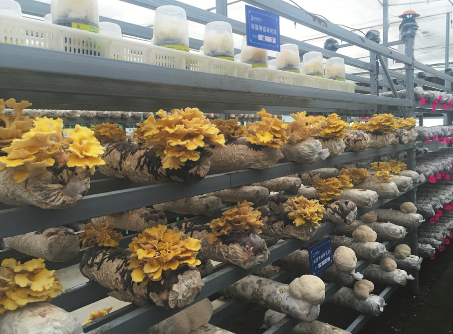 图为裕国股份培育的黄菌菇、猴头菇等食用菌新品种。 (本报记者张琴摄)