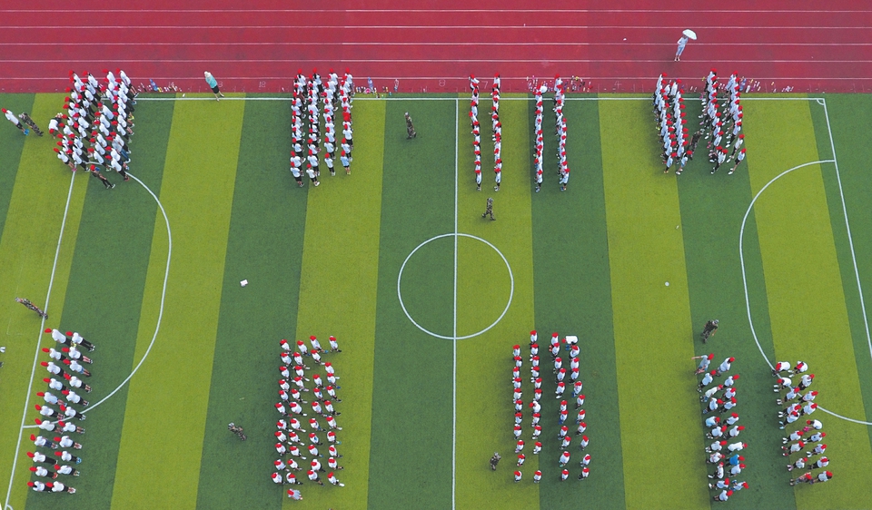 暑假结束,我市中小学生迎来新学年的学习生活。图为随州市外国语学校七年级新生正在接受入学前军训。 (本报记者 徐斌摄)