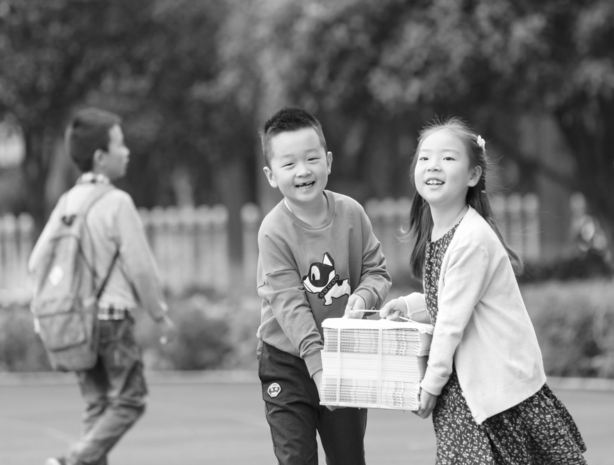 9月1日,我市中小学如期开学,孩子们重返校园。图为曾都区实验小学内,2名小学生高兴地领取新教材。(本报记者 徐斌 摄)