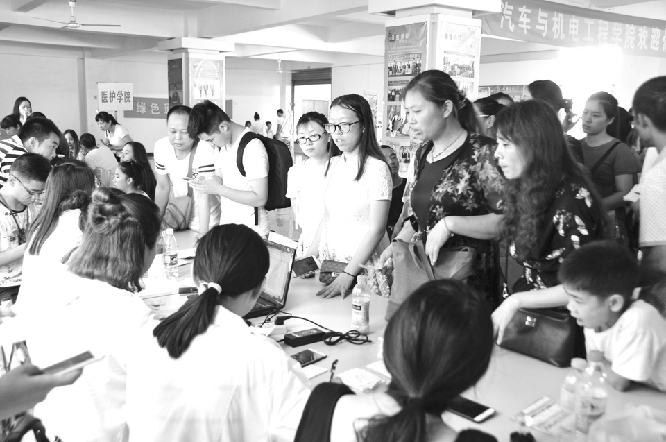 8月28日,伴着学院校园广播温馨柔和的旋律,随州职业技术学院2017年集中迎新工作有条不紊地拉开了序幕,来自祖国四面八方的2600多名新同学背着行囊,带着憧憬,走进了热情洋溢的随州职院校园。(通讯员 张亦飞摄)