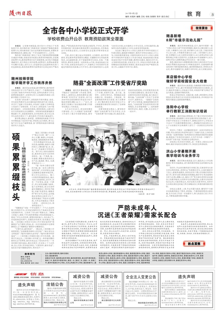 本报讯 记者陈巧玲报道:我市各中小学校已于本周陆续开学。我市物价部门和教育部门将继续严格规范教育收费行为,同时教育部门加大宣传教育资助政策,部署秋季教育精准扶贫,确保让每一个学生能够有学