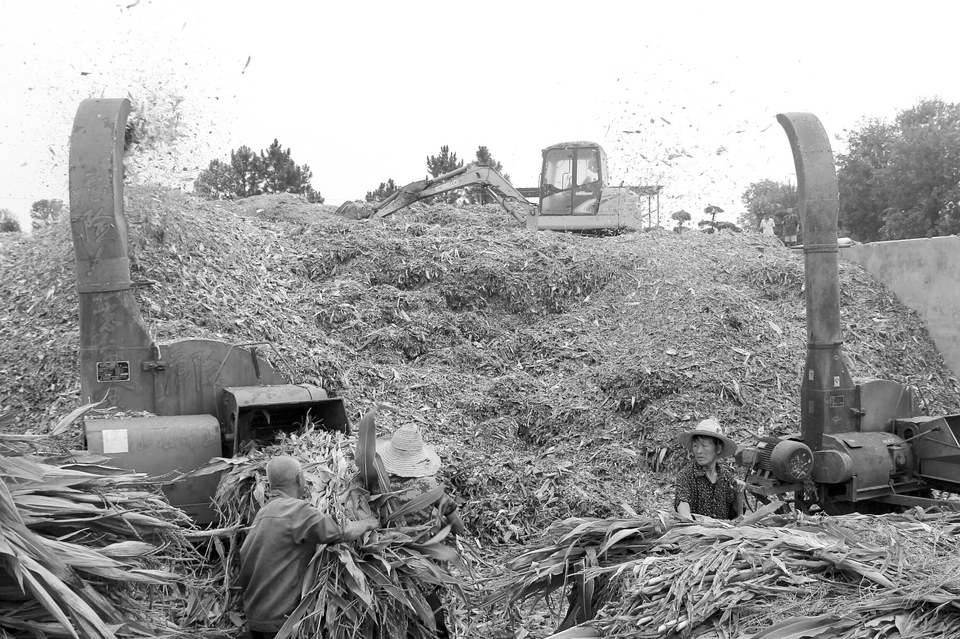 市农业部门加快推广秸秆青贮、氨化和发酵技术,扶持发展一批像“都市放牛娃”这样的秸秆饲料加工企业,年收购周边农民秸秆近万吨,提高秸秆饲料化利用水平,提升秸秆综合利用率,使随州的天更蓝了,空气更清新了,环境更洁净了。图为“都市放牛娃”公司加工玉米秸秆的场景。(本报记者 王璟天摄)