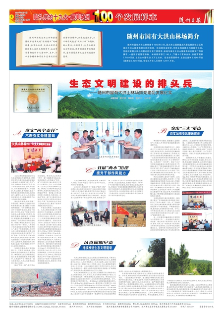 本报记者 杨文明 通讯员 陈华山 王仁贵 随州市国有大洪山林场紧紧围绕市委市政府“绿满随州”战略部署,在市林业局、大洪山风景名胜区党工委的正确领导下,认真学习贯彻党的十八届四中、五中、