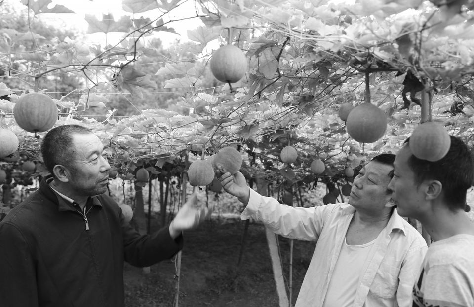 曾都区府河镇四五咀村村民黄成旺日前在瓜蒌种植基地察看瓜蒌生长情况。据了解,黄成旺今年种植瓜蒌35亩,瓜蒌长势喜人,预计收入达20余万元,可吸纳10余名贫困村民务工,帮助贫困户脱贫增收。(本报记者 孙洪涛 特约记者 刘金伟摄)