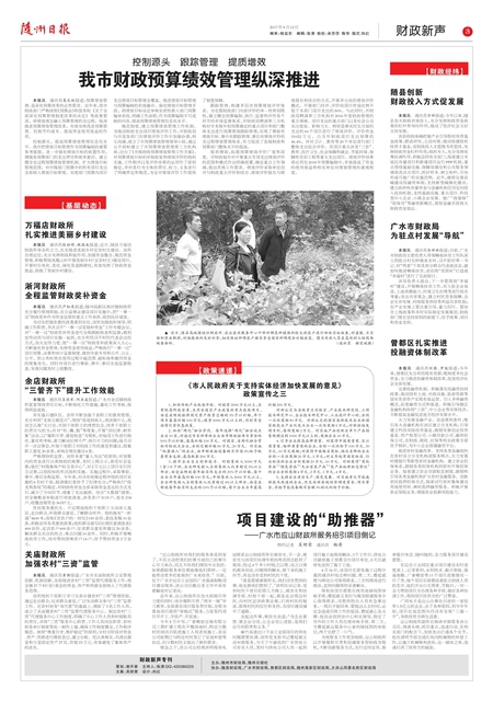 本报讯 通讯员夏礼锐报道:预算绩效管理,是深化预算改革的必然要求。近年来,我市财政部门严格按照《预算法》和国务院《关于全面深化预算管理制度改革的决定》等政策要求,将绩效理念融入预算管理的