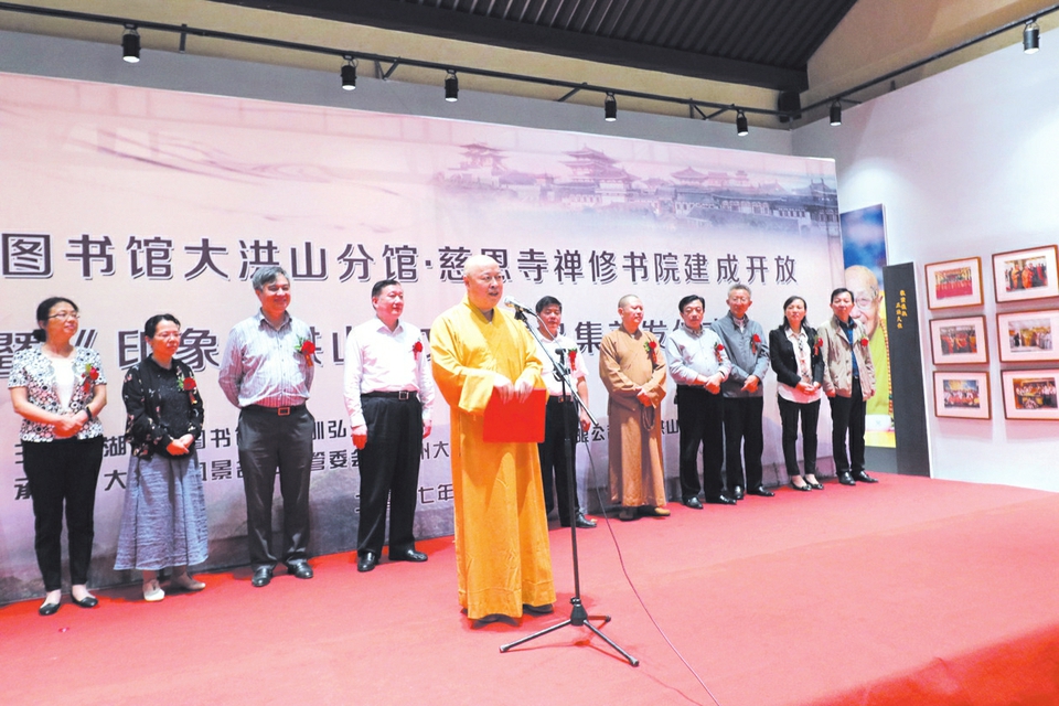 一场触动心扉的文化盛宴:9月6日,湖北省图书馆大洪山分馆暨慈恩寺禅修书院正式建成开放,在素有“楚北天空第一峰”美誉的大洪山宝珠峰上,来自省市文化艺术界、宗教界的100余名嘉宾参加开放仪式。这标志着大洪山景区又增添一精品文化景点。中佛协副会长、随州市佛协会长、大洪山慈恩寺住持印顺大和尚,省民宗委副巡视员李泽生,市委常委、统战部长冯茂东,副市长郑晓峰,湖北省图书馆党委书记贺定安,共同为湖北省图书馆大洪山分馆、慈恩寺禅修书院揭幕。中佛协常务理事、河南省桐柏山太白顶云台禅寺、河南省光山县大苏山净居寺住持清远大和尚,武汉图书馆馆长李静霞,市委宣传部、市文联、市民宗局、市旅游局、市文体局、市图书馆等相关单位参加活动。当日活动中,还举行了主要由随州市文艺界负责人创作的《印象大洪山》文艺作品集首发仪式及大洪山禅修漫谈座谈会,与会嘉宾在图书馆一同分享景区文艺作品成果,畅谈景区文化发展。