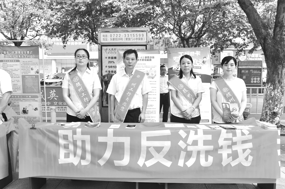 近日,随州工行员工走上街头开展反洗钱宣传活动。他们向来往市民发放反洗钱宣传折页,现场解答市民的咨询,提高了市民的反洗钱意识,增强了反洗钱能力。 (通讯员 龚 萱摄)