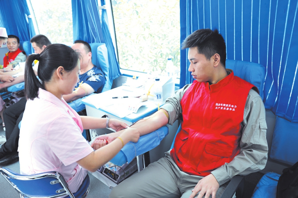 近日,随州供电公司党员服务队开展无偿献血活动,用爱心传递正能量。(通讯员 黄希 刘星雨摄)