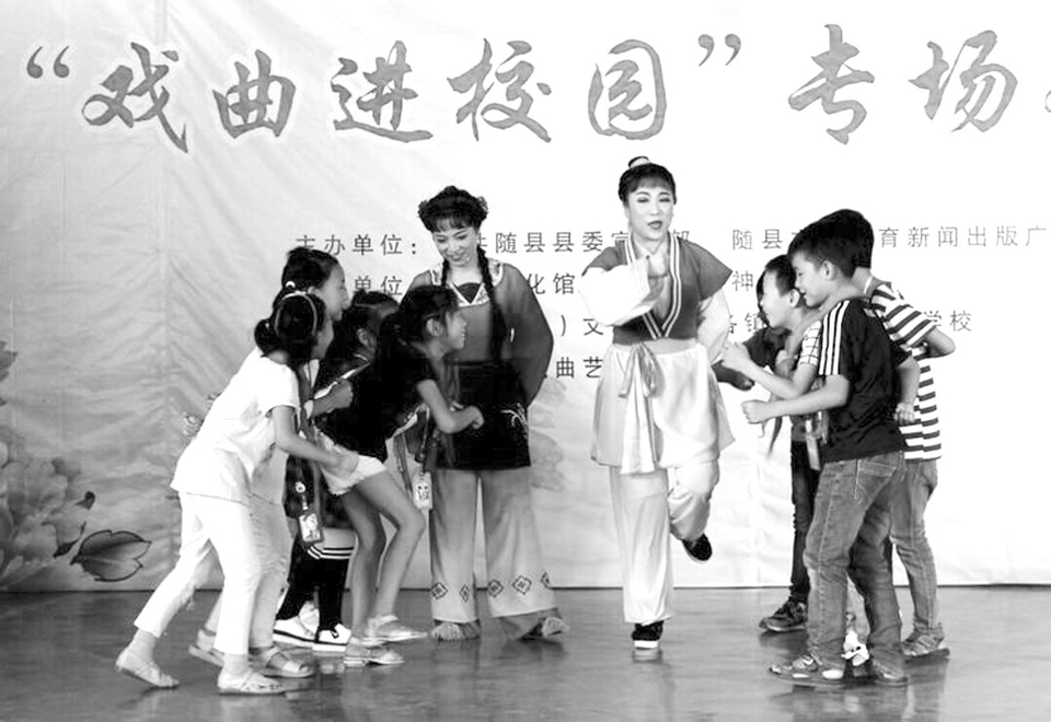 近日,随县“戏曲进校园”活动走进万福店中心小学,一个多小时的演出,台上精彩纷呈,台下掌声雷动、叫好声不断。此次“戏曲进校园”活动使该校师生在戏曲欣赏中得到传统文化的熏陶,也将使在学生们心田里播下的戏曲种子生根发芽。 (通讯员 叶 璐摄)