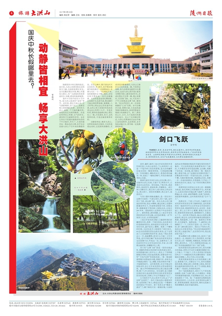 贺晓利 随着国庆中秋长假的临近,连日来,大洪山风景名胜区动员各方力量,全面排查景区安全,全方位整治景区环境,精心布置各大景点,为广大游客的到来营造安全、快捷、舒适的旅游氛围。 每年9