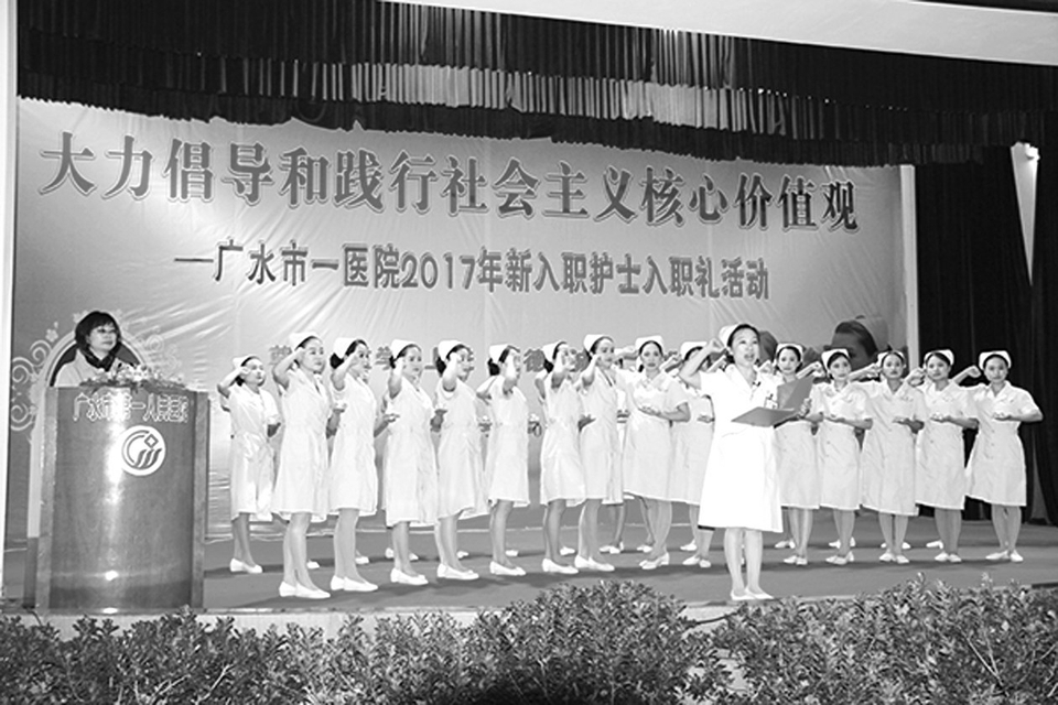 ▲近日,广水市第一人民医院为新入职的31名护士举行拜师礼,将“救死扶伤、忠诚奉献”的南丁格尔精神和“尊师重道”的中华传统文化相结合,提高专业技能,深化优质服务,做人民满意的医务工作者。