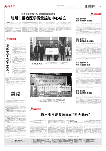 本报讯 通讯员熊仕伟报道:10月25日,随州市重症医学质量控制中心成立大会暨湖北省随州市重症医学质量控制中心授牌仪式在市中心医院举行。湖北省重症医学质量控制中心、市卫计委、各级医疗机构