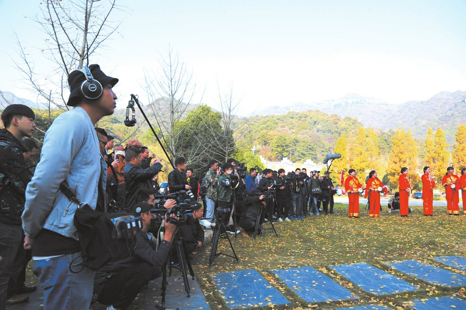 一身金黄的大洪山古银杏树下,伴随着锣鼓喧天的民俗腰鼓表演,数位潮爷爷和萌“孙子”来到大洪山银杏广场,正式开启一段金秋大洪山的神秘之旅。11月2日,湖南卫视“宝贝的新朋友”真人秀节目在大洪山风景名胜区开机拍摄。