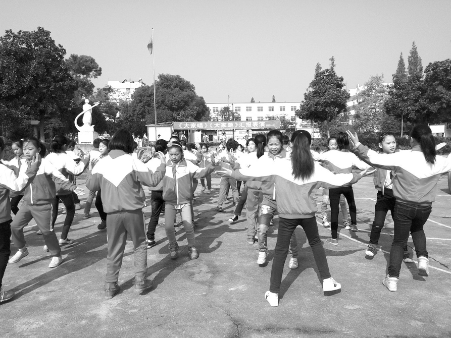 近日,随县新街镇第一小学举行了“大家唱、大家跳”展演比赛,各班唱红歌跳校园集体舞,整个比赛热烈、活泼、有序,丰富了校园艺术教育的形式,更展示了新时期师生的精神风貌。(通讯员 汪飞 相敏摄)