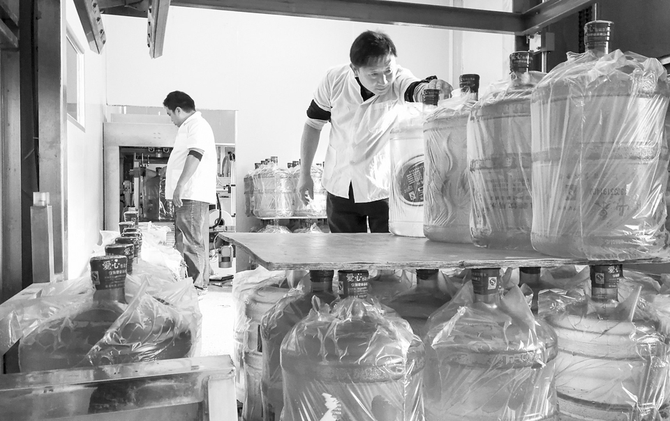 随州市爱心职业培训学校多方筹措资金引进日产3000桶自动化纯净水生产线,生产的“爱心”牌纯净水产销两旺,不仅解决了20名残疾学生的就业,同时为学校可持续发展提供支撑。 (本报记者 李文军 摄)