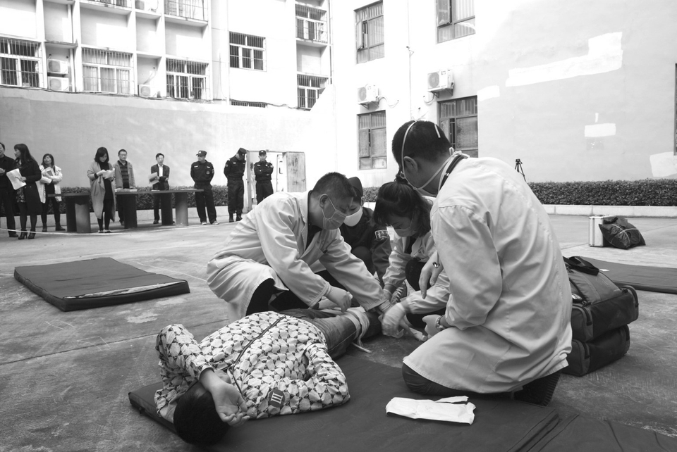 为进一步提高处置突发事件的能力和水平,实现应急处理工作的常态化、规范化、实战化,近日,曾都医院开展了一次应对道路交通事故伤人突发事件应急处置实战演练。图为应急演练现场。 (通讯员 曾言 霍天江摄)