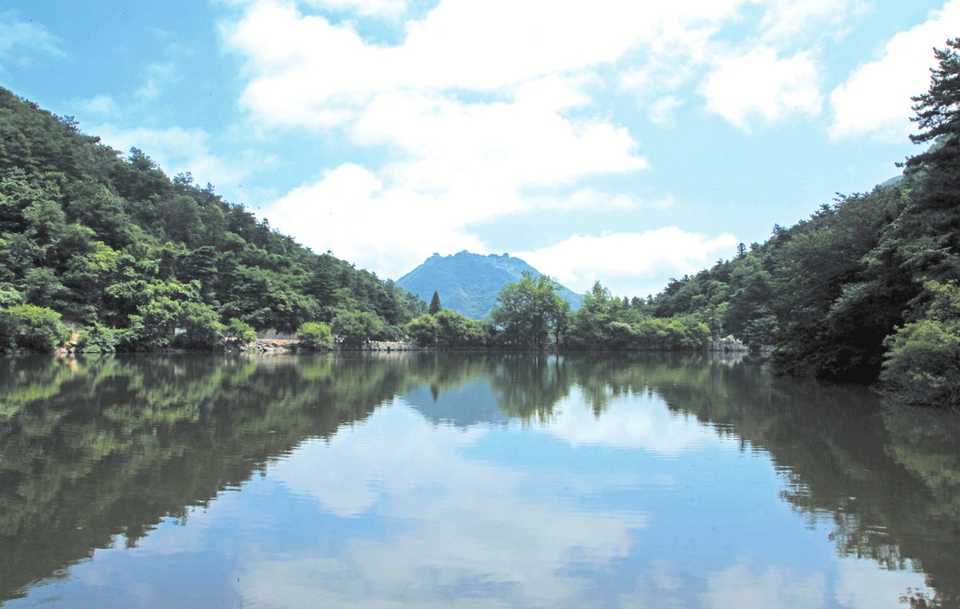 雾渐淡山影初显,睡美人轻盈宛转动人的曲线——乳峰挺举少女的羞涩,山谷恰似丹青中的荷莲……太阳收去了如雾的梦幻,白龙池、黑龙池,眨动着顾盼生姿明亮的眼睛,微风送来的秋波,荡漾在谁的心田?因为心中有爱啊,家乡的山山水水都是意中人的容颜……水 大洪山的精神