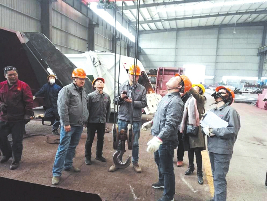 近日,为确保特种设备安全,湖北特检院随州分院检验人员对厦工楚胜公司起重机械进行检验。图为检验现场。(通讯员 聂亮成摄)