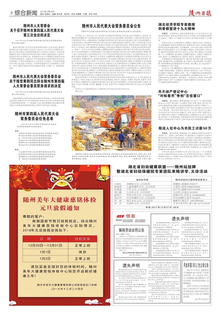(2017年12月25日随州市第四届人民代表大会常务委员会第七次会议通过) 随州市第四届人民代表大会常务委员会第七次会议决定,随州市第四届人民代表大会第三次会议于2018年1月3日至6