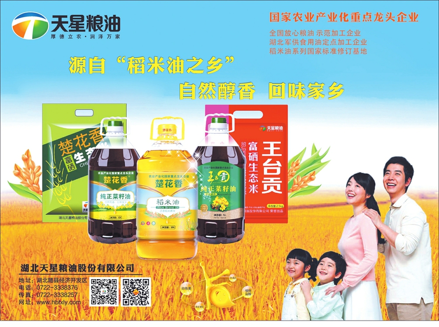 七年时间,天星粮油集众多荣誉于一身,已成为随州粮油第一品牌,真正的荆楚香、荆楚味。