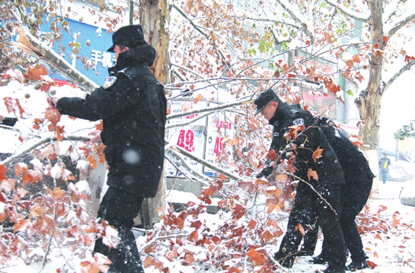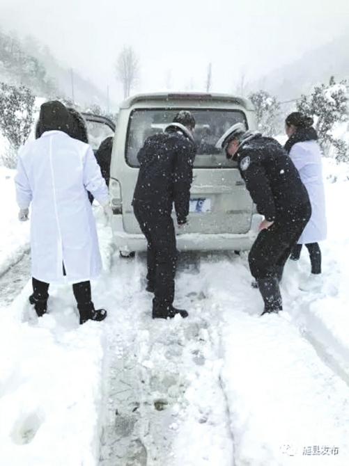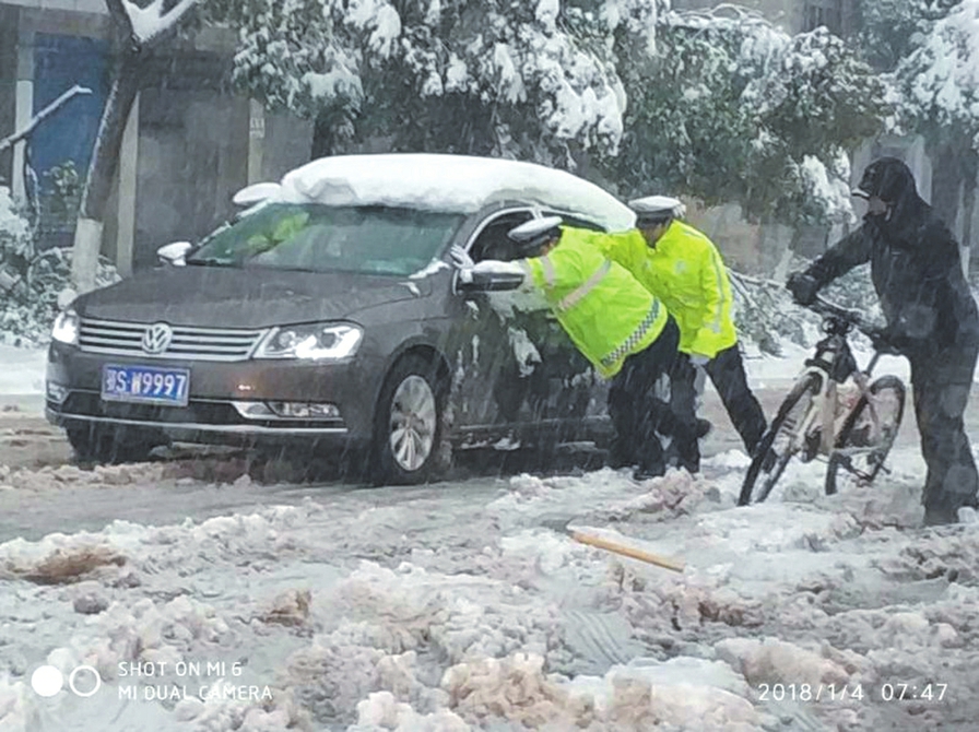 暴风雪肆虐,我市公安民警在风雪中坚守,为群众的安全出行保驾护航,展现了一副最美“雪警”的画面。(通讯员 常军 程昆 刘智明摄)随州交警风雪凛冽保畅通随县公安局柳林派出所护送临产孕妇安全到达卫生院随州特警冒雪清理路障 执勤民警“雪染”的风采