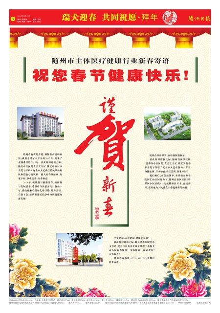 伴随着收获的喜悦,满怀着奋进的豪情,我们走过了不平凡的2017年,迎来了充满希望的2018年。值此辞旧迎新之际,随县中医医院党总支书记、院长叶恒江率全院干部职工向全市人民致以最诚挚的问候