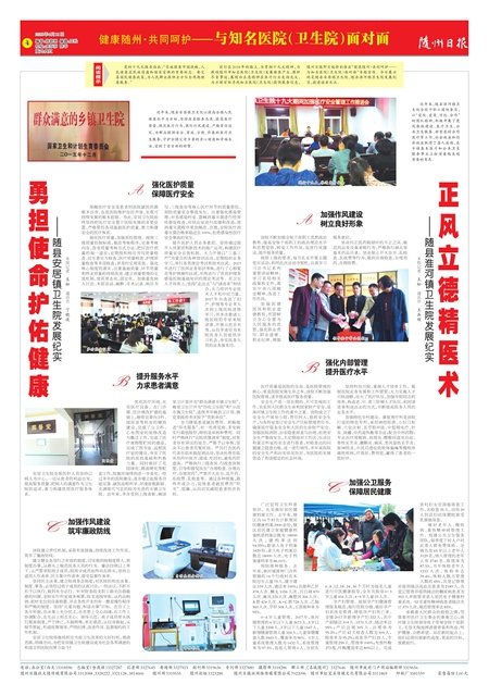本报记者王松 通讯员丁晓波 近年来,随县安居镇卫生院以提高全镇人民健康水平为目标,坚持改善服务态度,提高医疗质量,规范医疗行为,强化行风建设,严格责任追究,为群众提供安全、有效、方便、