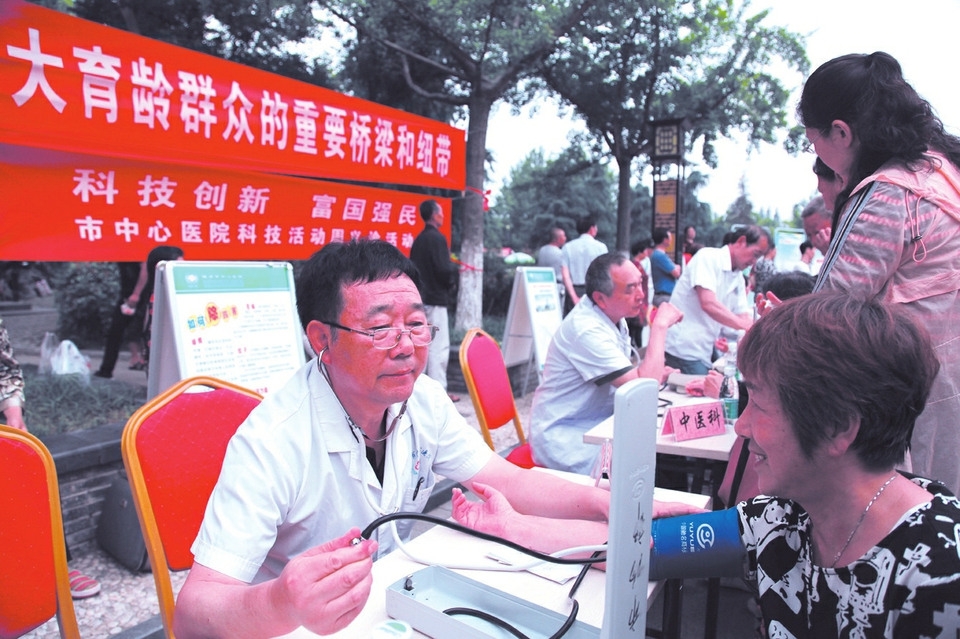 日前,市中心医院组织医疗专家在随城神农公园开展义诊活动,为过往群众提供免费医疗咨询、问诊。(本报记者 王璟天摄)