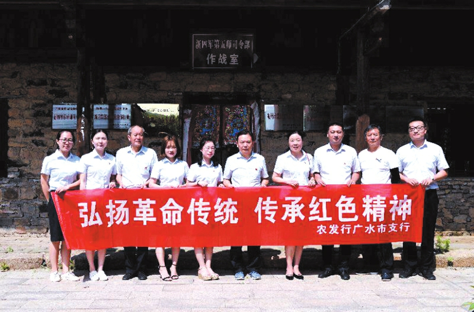 日前,农发行广水支行党支部,带领全体工作人员,到广水市吴店镇新四军五师驻地旧址,开展"弘扬革命传统传承红色精神"主题教育活动,工作人员受到革命传统教育。(通讯员 胡家菊摄)