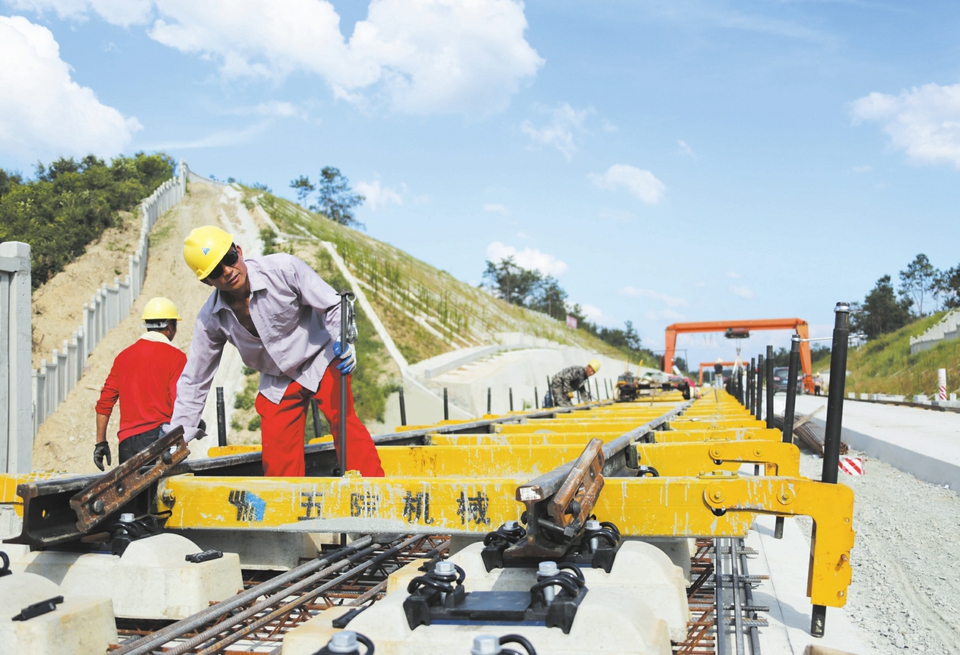 汉十高铁随州段建设者近期冒着高温进行提枕作业。建设者们表示,他们将以优质的作业,确保汉十高铁随州段按时通车。(本报记者 孙洪涛摄)