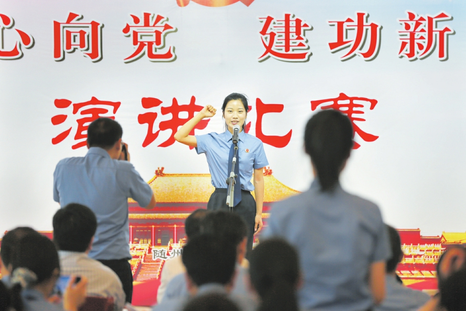 7月13日,市检察院举行“巾帼心向党,建功新时代”主题演讲比赛,激励全市女检察干警担负新使命,增强新本领,展现新作为,全市检察机关12名选手参加比赛。 (本报记者 徐斌摄)