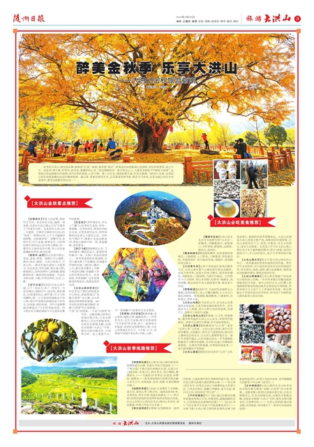 本刊策划 贺晓利 秋季的大洪山,暖色染层林,枫树披“红装”,栎树、银杏换“黄衣”,野菊金灿灿地散满山坡崖畔,到处野果累累,取之不尽。登金顶,拜大佛、听梵音、临圣泉,澄澈你的心灵。“登宝