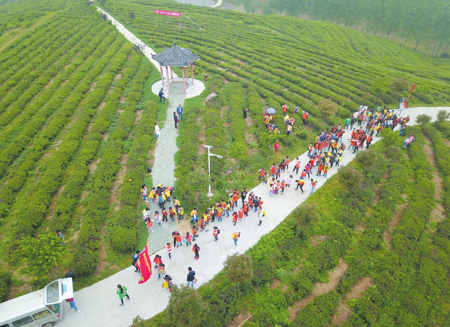主打采茶、制茶、茶文化体验的云峰山万亩茶园景区,作为全市乡村游、研学游的后起之秀,今年来大获市场认可。图为国庆假期,景区内游人如织。(本报记者陈 云摄)