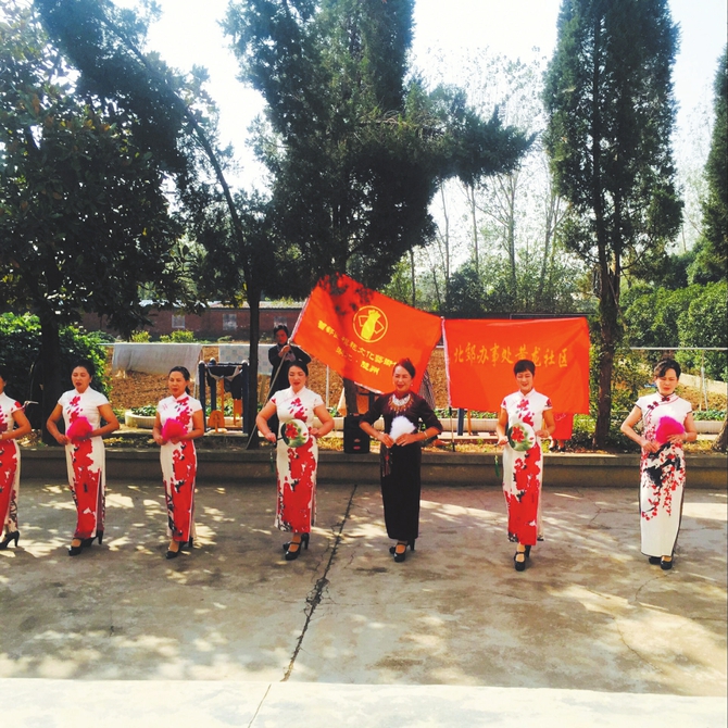 10月15日,为弘扬中华民族敬老、爱老、孝老的传统美德,曾都区北郊办事处黄龙社区组织曾都区旗袍协会、市管弦乐队一行40多人来到北郊福利院看望慰问老年朋友们,送去节日的祝福。(通讯员 肖兰兰摄)