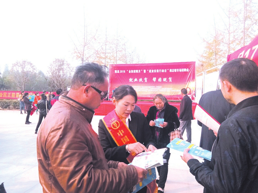 10月17日,随县殷店镇文化广场上人头攒动、热闹非凡。由市人社局、随县人社局、随县招商局主办,市劳动就业管理局、随县劳动就业管理局、殷店镇人民政府等单位承办的2018年随县“金秋招聘月暨就业扶贫行动日”专场招聘会在这里火热进行。