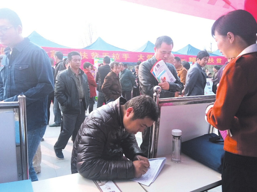 “你们招聘的岗位是做什么的?工资待遇是多少?”在远元集团的求职桌前,一位左腿稍有残疾中年男子询问道。招聘的工作人员立即向他作了介绍,得到答复后,男子便在求职表上填上了自己的情况。他告诉记者,他是殷店镇鹦鹉村建档贫困户,因腿残很难在外找到工作,今天过来看看,说不定有适合的岗位。